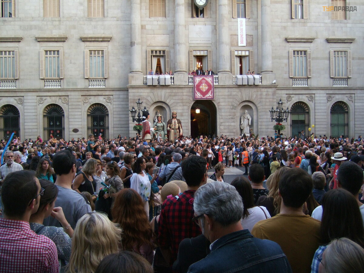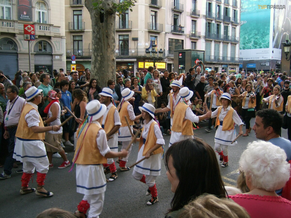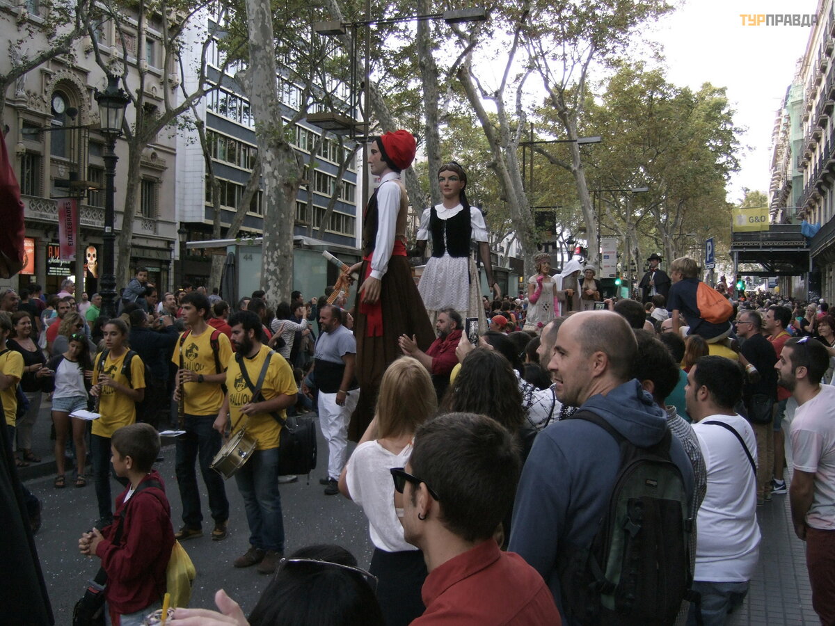 W tym dniu był Dzień Miasta w Barcelonie, z jednej strony ciekawie oglą dać liczne pochody i przedstawienia, z drugiej strony wszystkie sklepy, w tym sklepy spoż ywcze, był y zamknię te i nie był o sposó b, aby dostać się do Sagrada Familia. Po prostu szedł em w tł umie mieszczan i turystó w. W procesji uczestniczył y grupy ludzi z ró ż nych rejonó w, któ rzy nosili ogromne lalki i robili coś na kształ t pokazu. Nastę pnie cał a procesja zebrał a się na placu, gdzie wybrano najlepsze lalki.