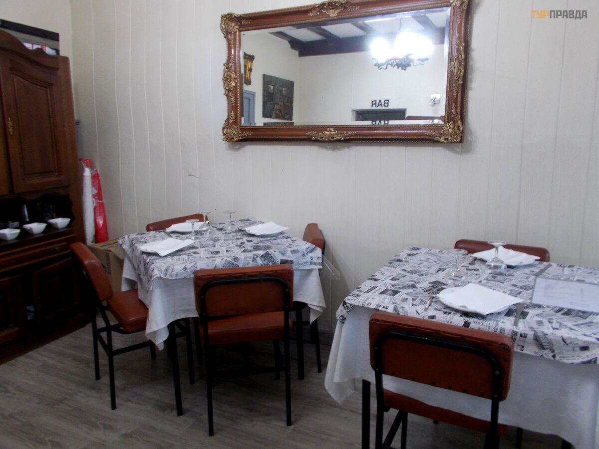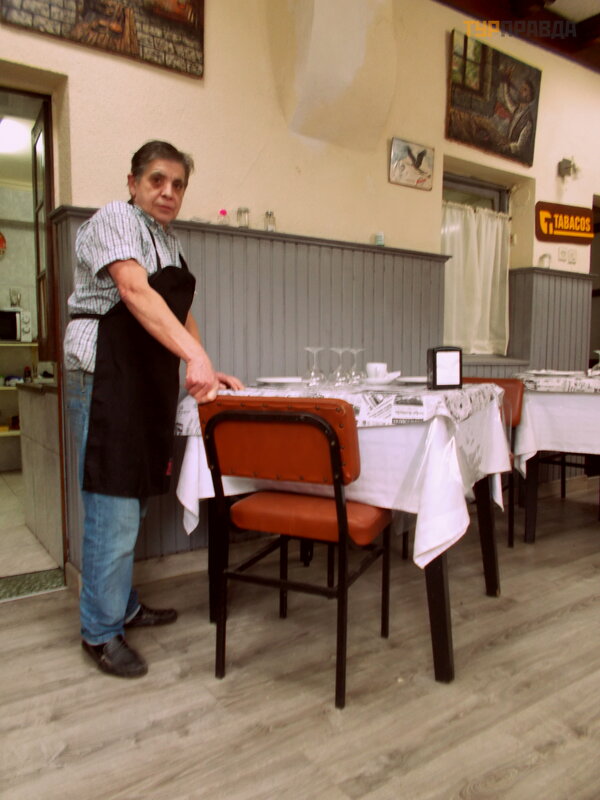 Do autobusu był a jeszcze prawie godzina, a kurtka i dż insy był y bardzo mokre, wię c po prostu nie miał em wyboru i poszedł em do mał ej kawiarni w Puente Viesgo - kawiarni-baru Tabacos. Wnę trze i atmosfera tego lokalu bardzo przypomina sowiecką stoł ó wkę .