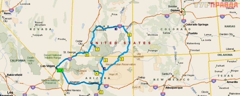 Лас-Вегас - дамба Гувера - Седона - гранд Каньон -Глен Каньон - Лэйк Пауэлл - Подкова - каньон Антилоп -долина Монументов - парк Арок - Брайс каньон - Зион каньон - Лас-Вегас