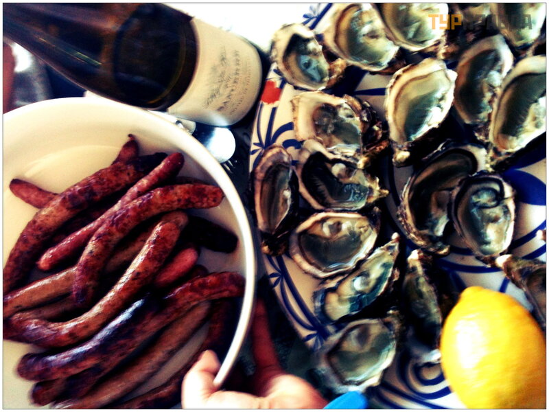 Пересматривала фотографии тура Запад Франции, сделанные моими чудесными друзьями-туристами Екатериной и Сергеем. Еще раз огромное спасибо им! Вспомнила наше душевное посещение города Бордо и окрестностей, и поняла, что в прекрасный Сент-Эмильон надо ехать исключительно в удобной обуви, дабы не совершать экстремальный спуск по его древним улочкам. ) Об этом необходимо помнить и при подъеме на Дюну дю Пила (чудо природы). Конечно же, город Бордо помимо своих прекрасных достопримечательностей, открывает туристу массу приятных гастрономических наслаждений. Традиционно для наших групп стало посещение популярного ресторана Chapeau Rouge, где в приятной обстановке за приемлемую цену можно отведать оригинальные блюда. И так как многих наших туристов, путешествующих к Атлантике, интересует дегустация устриц, хочу поделиться своим гастрономическим открытием. Оказывается, существует рецепт устриц a la bordelaise. Он отличается от традиционного. Только в этих краях, а точнее в Биаррице, я узнала, что суть этого рецепта заключается в подаче свежих устриц с жареными колбасками. Когда мне в первый раз предложили отведать это лакомство, меня это несколько насторожило. Но, к моему удивлению, такое сочетание продуктов оказалось весьма элегантным. И я настоятельно рекомендую всем, кто отправляется в Бордо: доставьте себе такое удовольствие!