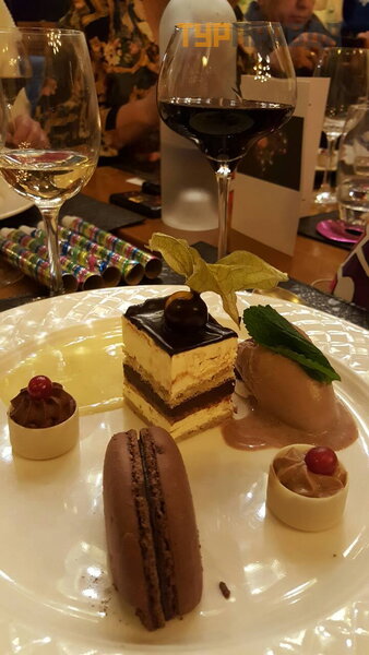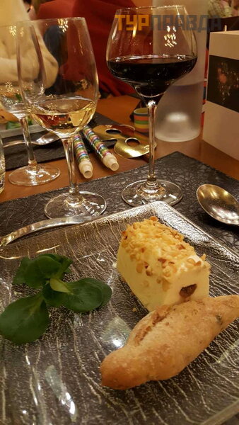 Радостное настроение поджидало нас уже при входе в ресторан, а потом – праздник для гурманов... Первые две закуски представить вам не смогла(( Они были выше всех похвал!!! Начнём: foie gras с pain d'epices и бокала гевюстраминер, затем нежнейшая телятина со сморчками... Три десерта в новогоднем меню!!! Мусс de chevre, эльзаские печенюшки и super assiette, которую попробовать не хватило сил Как же я сейчас сожалею!!))