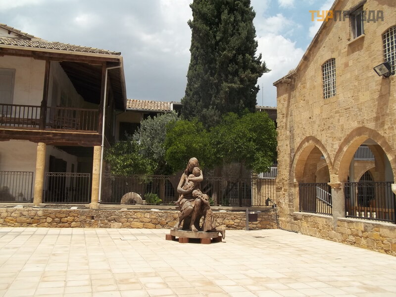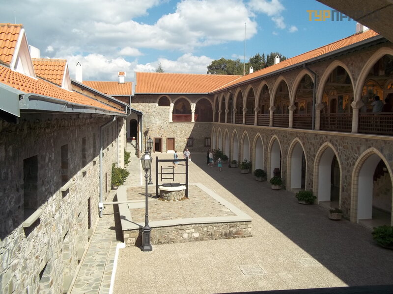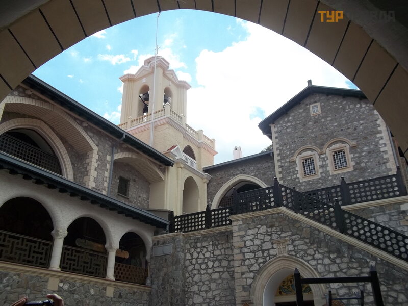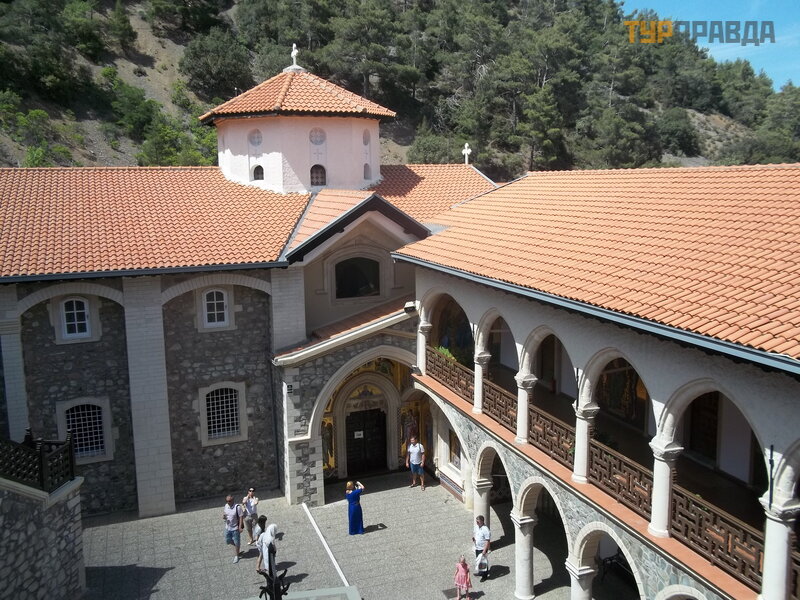 «Далее, через лес и горные деревушки мы направимся в северную часть Троодоса, где располагается Киккос – самый главный и богатейший монастырь Кипра, где хранится икона Святой Богородицы, авторство которой приписывается апостолу Луке. В свое время послушником монастыря был первый президент Кипра Макариос, тело которого позднее захоронили недалеко от монастыря.»