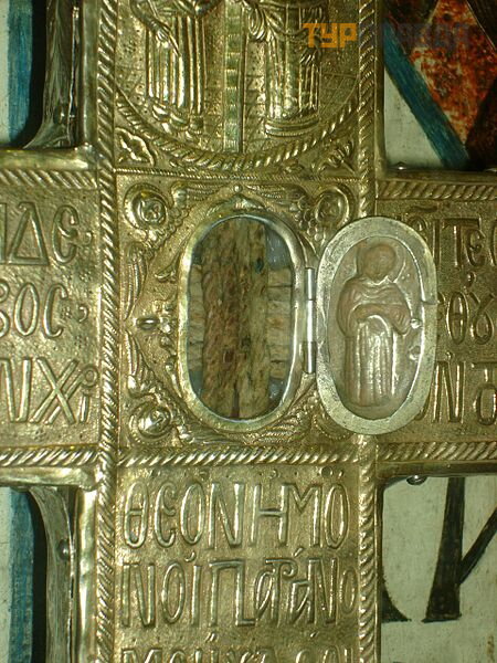 Реликвии спрятаны за маленькой дверцей, которая находится в середине оклада креста: