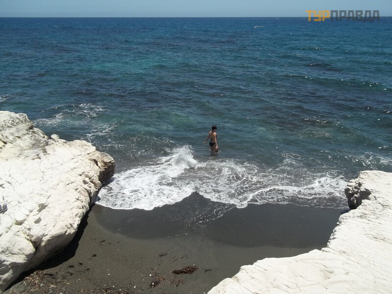 Дно каменистое, волны. Неудобно, наверно, было Афродите выбираться на берег. Мифы и легенды пересказывать не буду.