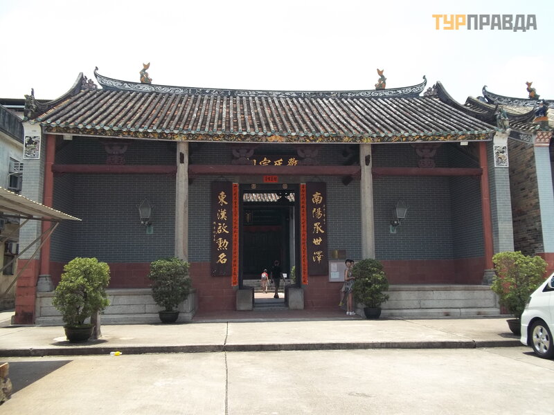 На небольшой площади расположены два родовых зала (смотрятся как близнецы): Tang Ancestral Hall и Yu Kiu Ancestral Hall. Сюда можно подъехать на машине, поэтому здесь есть единичные туристы.