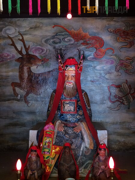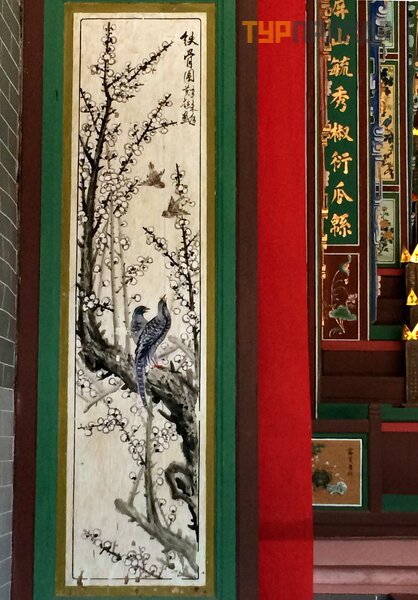 Обратная сторона входа. В этом важном Зале есть смотритель (сидит). Приподнятая красная дорожка, ведущая от входа, свидетельствует о том, что в глубоком прошлом представитель клана Тань занимал высокий пост в империи: