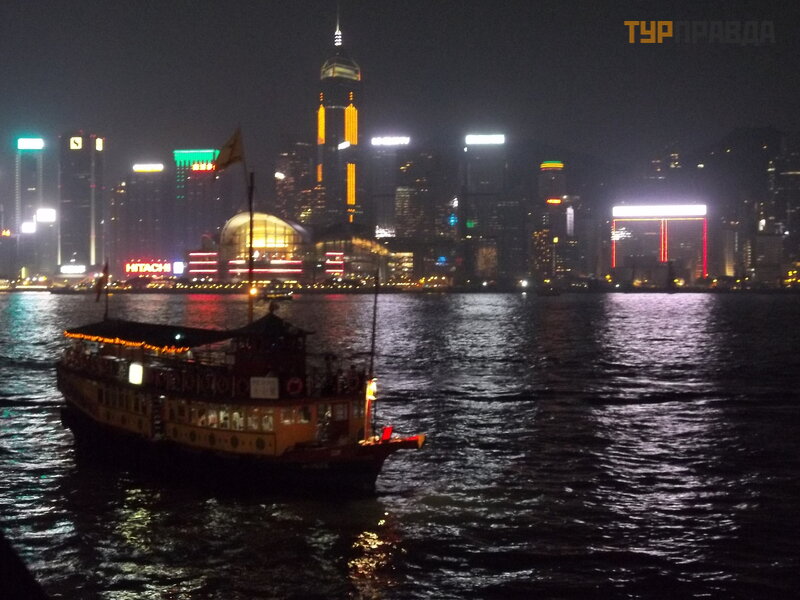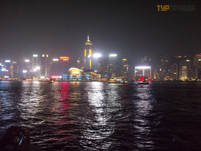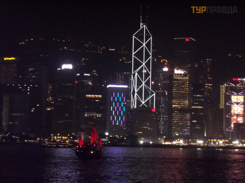 Все места возле окон были заняты. Но вечерний Гонконг рассмотреть было можно. Вид как-то отличался от этого рекламного (фото из интернета):