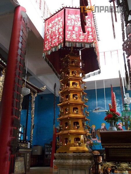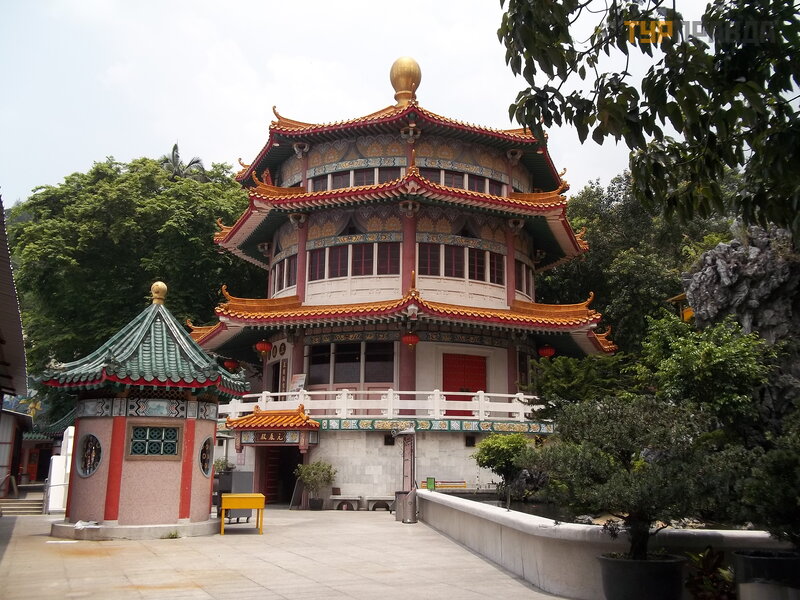 На такси и метро быстро добрались до последнего храма – Тинь Хау. Он расположен на острове Гонконг и «зажат небоскребами»: