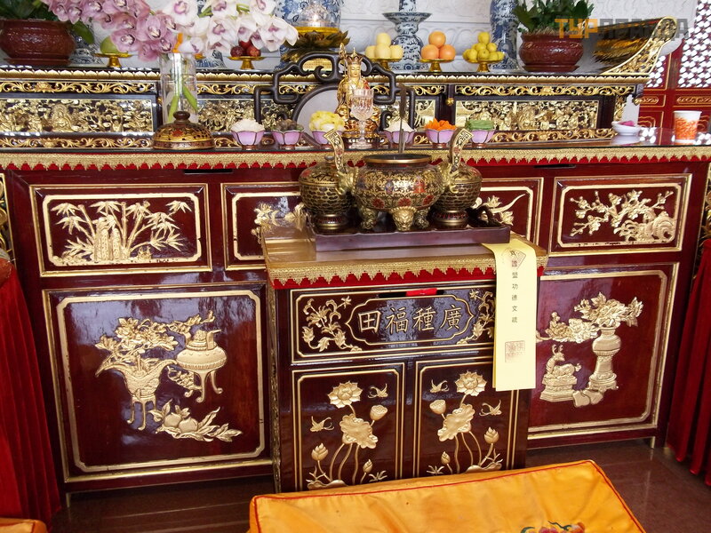 Даже несмотря на обилие пурпура и золота, на лунные врата, придающие еще большую "потустороннесть" храмовому облику, непонятные скульптуры и предметы, все равно во всем ощущаются такие гармония и покой, что даже просто рассматриваешь фото и меняется твое настроение. Не хочется спешить-суетиться, а только спокойно подумать о чем-то важном в жизни, в беге обычных дней от тебя ускользающем... Спасибо, Signora_L, за это ощущение.
