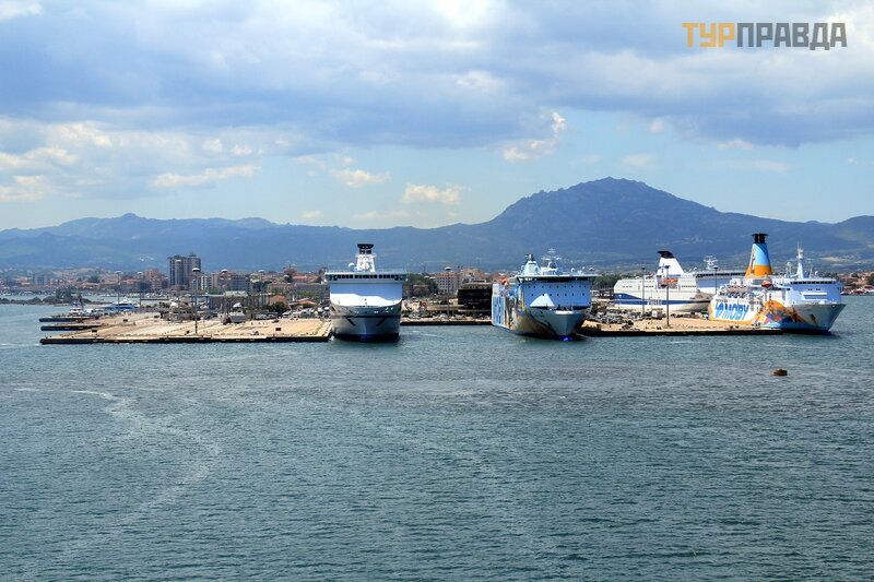 Отправляемся из порта очень рано. Выходим долго, медленно, я всё время сижу на балконе, грустно как - то и совсем не хочется расставаться с Сардинией. Другие корабли и паромы ещё продолжают стоять там...