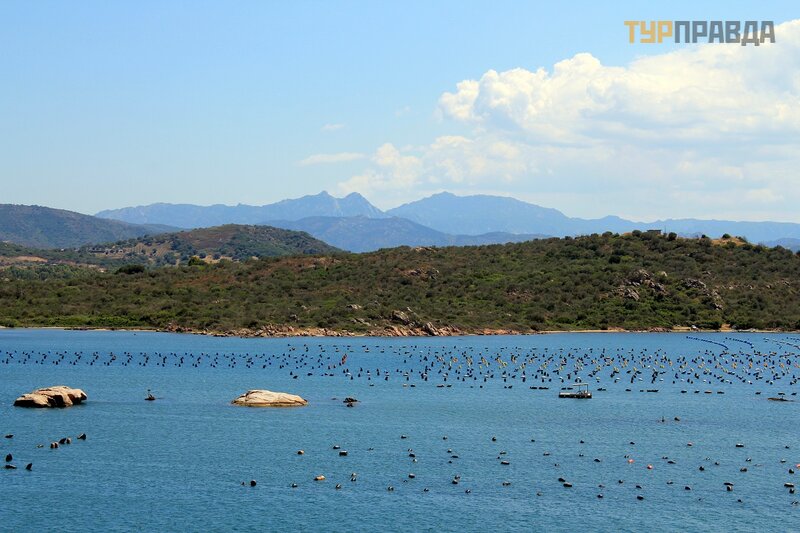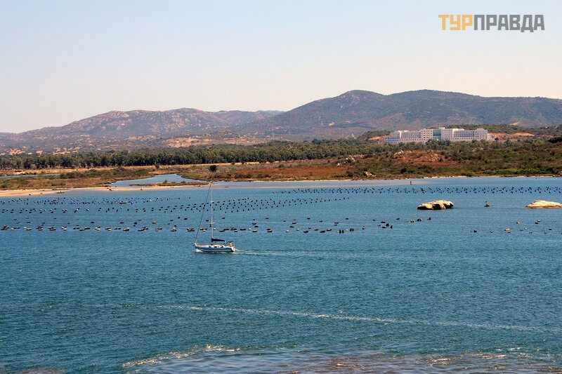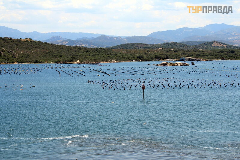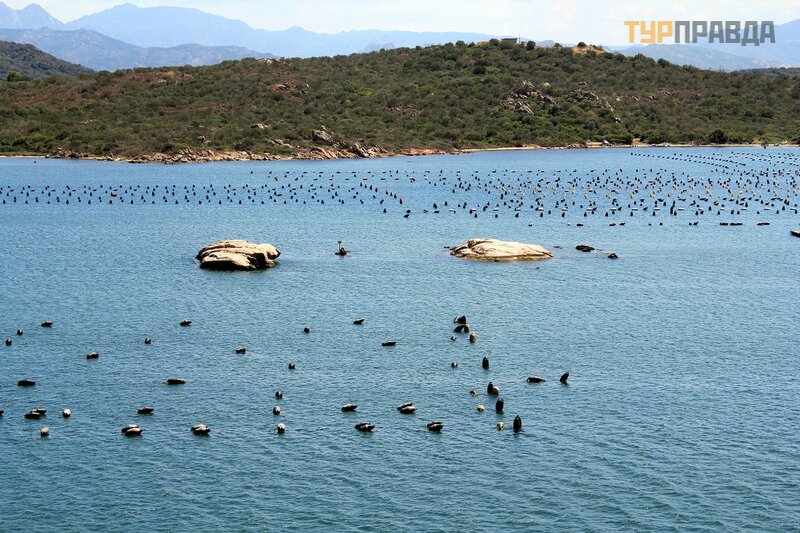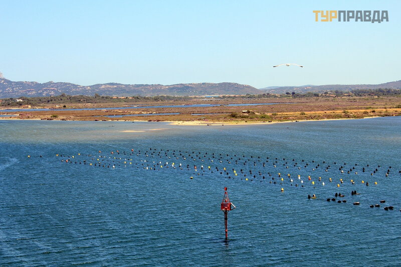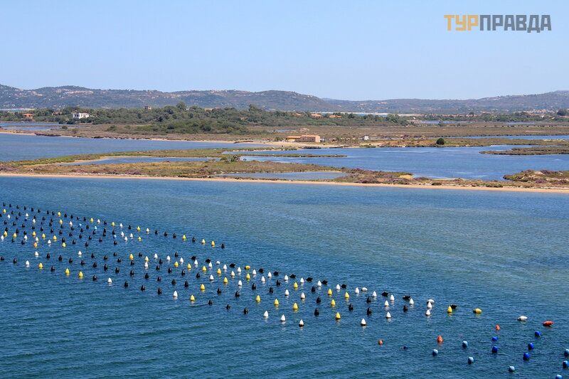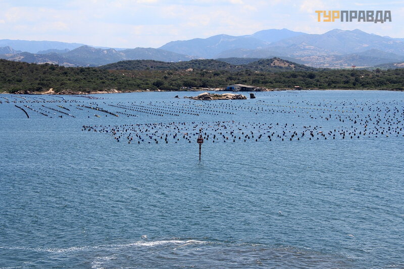 На этих огороженных территориях в прибрежных водах выращиваются мидии. Блюда из морепродуктов, как говорила гид, очень распространены в Ольбии и на Сардинии в целом. Основные блюда традиционной кухни Ольбии: сыр пекорино и мидии с миртом, ингредиентом, который используется также для приготовления местного алкогольного напитка.