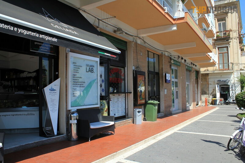 На первом этаже данного дома есть пиццерия, кафе - мороженое, банк и не большой магазинчик. Сам же отель находится на 3 этаже. Подошли, позвонили, нам сказали, ждите, сейчас мы вас встретим.