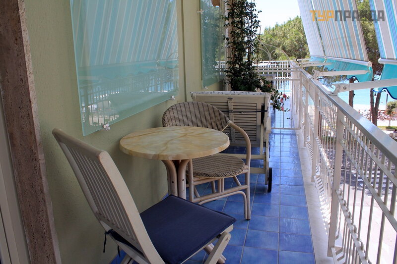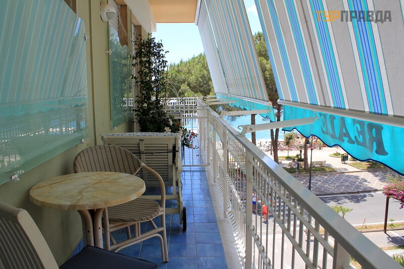 В номере есть кондиционер, которым мы пользовались постоянно. Как бы мы ни любили спать с распахнутой балконной дверью, здесь это было просто не возможно. И не потому, что рядом дорога, кстати, движение там вечером заметно снижается, а потому, что на углу в доме, как я уже писала, находится кафе - мороженое, которое работало до 2-х часов ночи. Даже если никто и не кричал, а просто разговаривал вполголоса, то ночью всё равно казалось, что орут благим матом. А рано утром начинают работать уборочные службы, доставка продуктов и т.д., одним словом, шум всю ночь. Мы закрывали двери, включали кондиционер и спали до утра сном младенца. Просыпались отдохнувшие, бодрые и сразу же на балкон: а как там погода? Надо отметить, что в эту неделю погода стояла отменная, ни одного дождя, даже пасмурных дней не было почти. Был один пасмурный день, и даже не день, а только вторая его половина.