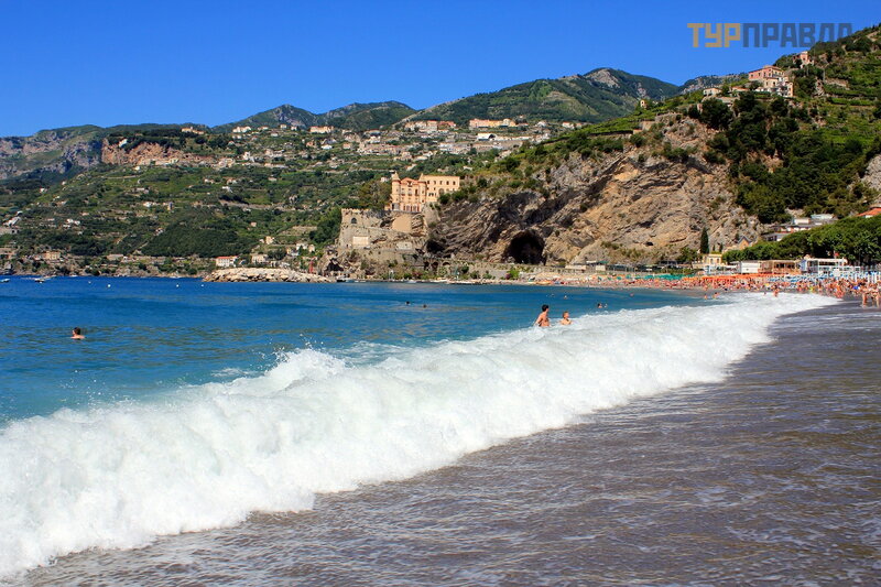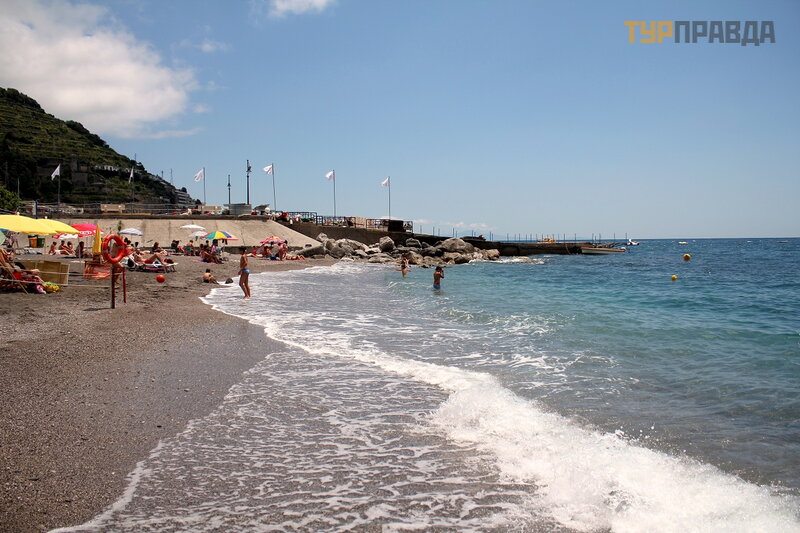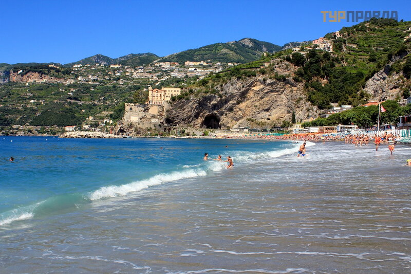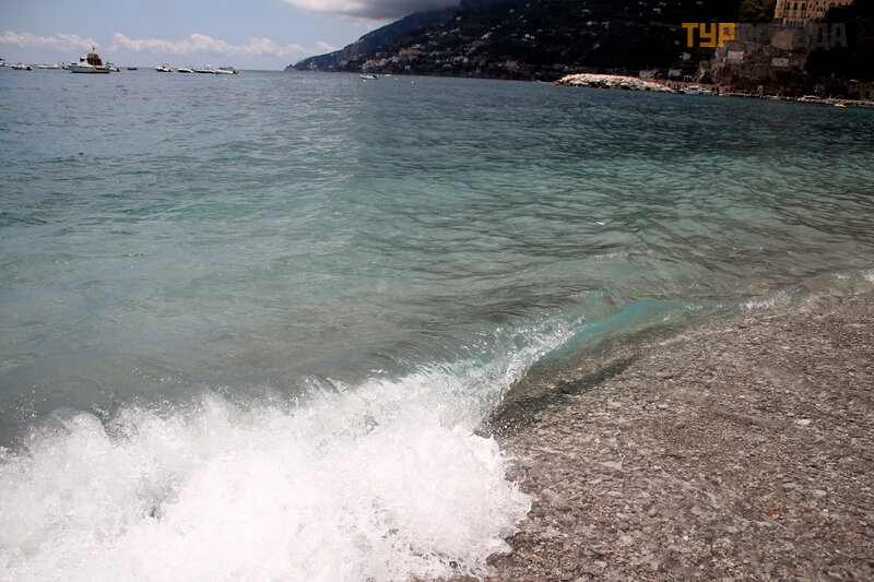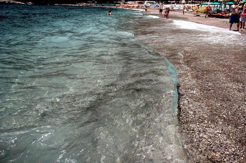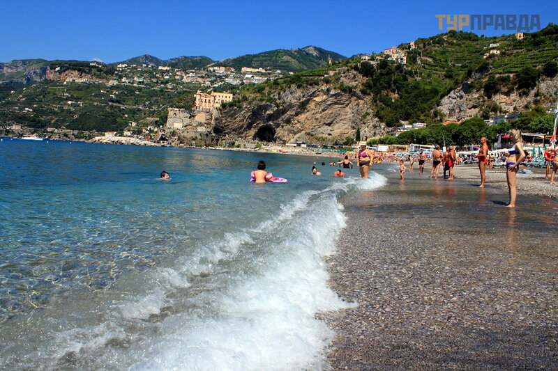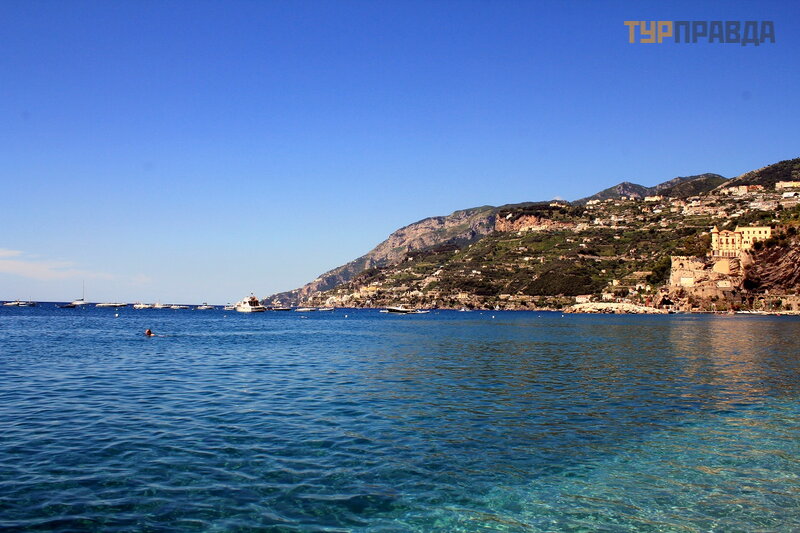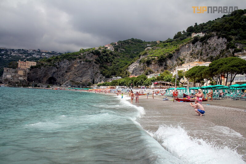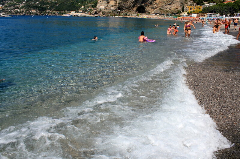 А это море ярким солнечным днём. И уже совсем другие оттенки! Красивое море в Майори, очень!