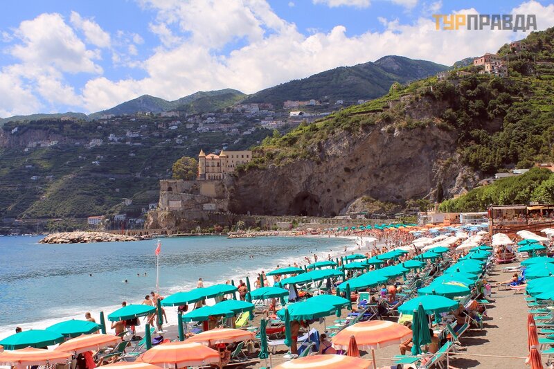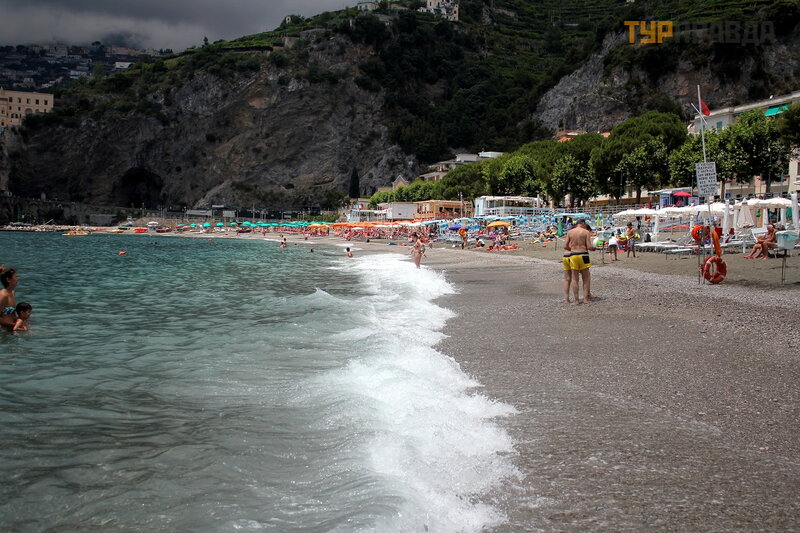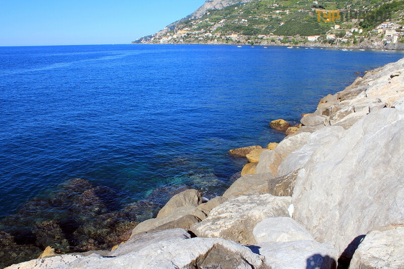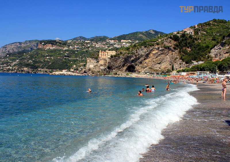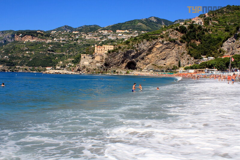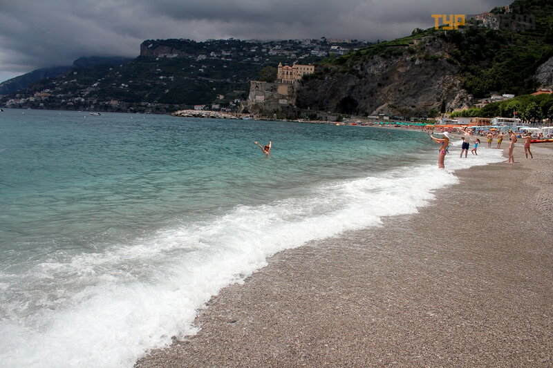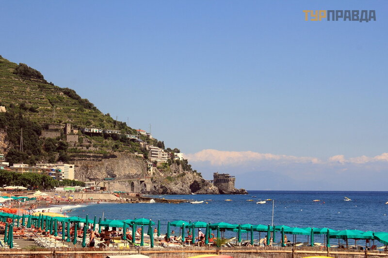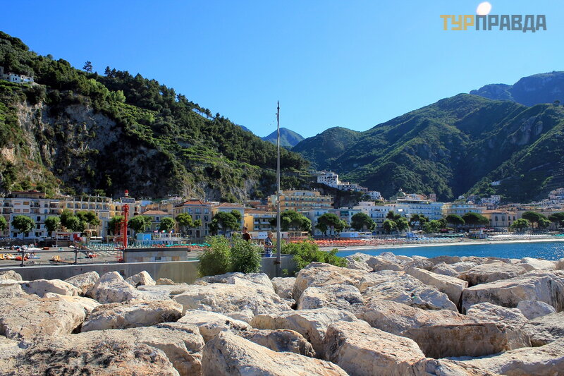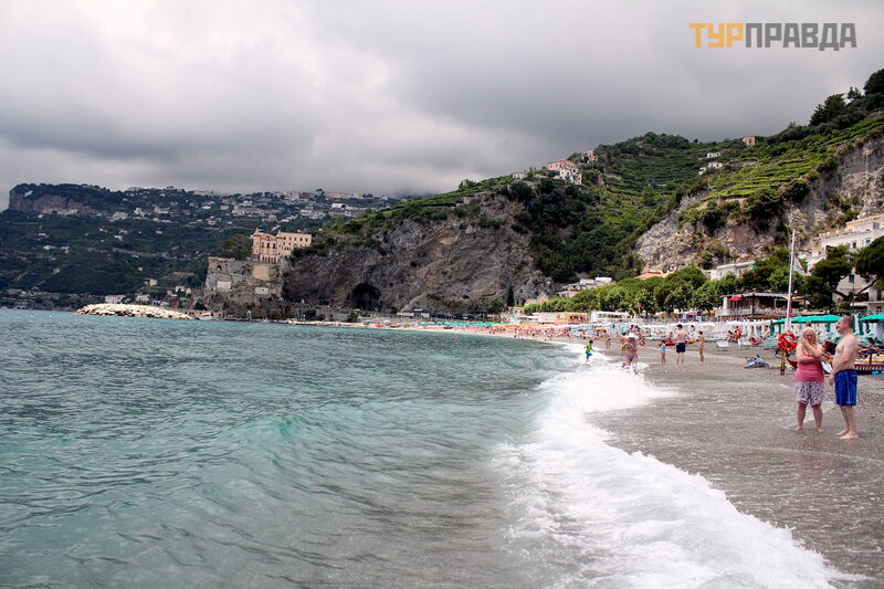 А это море ярким солнечным днём. И уже совсем другие оттенки! Красивое море в Майори, очень!