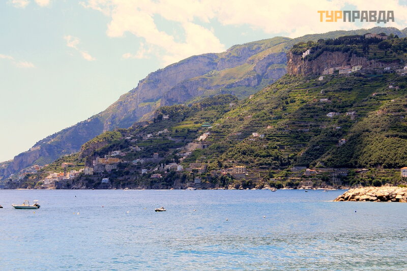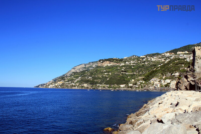 Автобус практически полупустой, садимся с левой стороны по ходу автобуса и в очередной раз любуемся с высоты на шикарное Амальфитанское побережье.