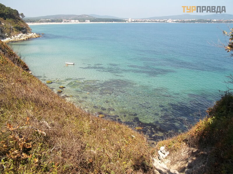 Последний полный день был посвящен окрестностям Созополя и самому городу. Оставался еще не исследованный вид транспорта – туристический паровозик, который курсирует от северо-западного пляжа «Золотая рыбка» до юго-восточного «Каваците». Где он останавливается в центре города, не знала, поэтому пришлось подбежать за ним вприпрыжку. Подтвердились отзывы, что утром сесть на паровозик проблематично, многие едут на лучший пляж вблизи от города. Одно место все же нашлось. Стоит 2 лв, кажется. Ехать минут 15.