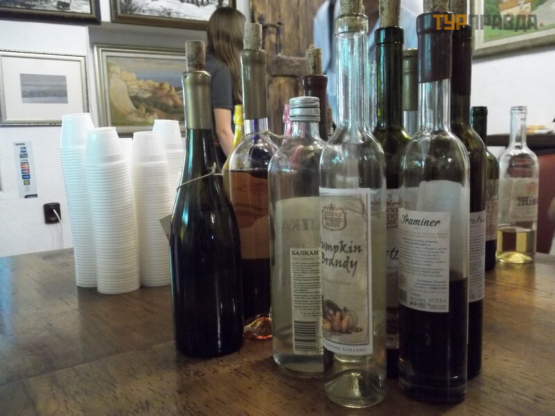 Цены вин выше, чем на той дегустации. А во время процедуры, так сказать, никакой закуски. А там была закуска – и прошутто, и дорогой сыр. Ну, и посуда: здесь одноразовые стаканчики, там - красивые бокалы. Осталось назвать ту винодельню в местечке Карнобат - Винарска изба "Братя Минкови".