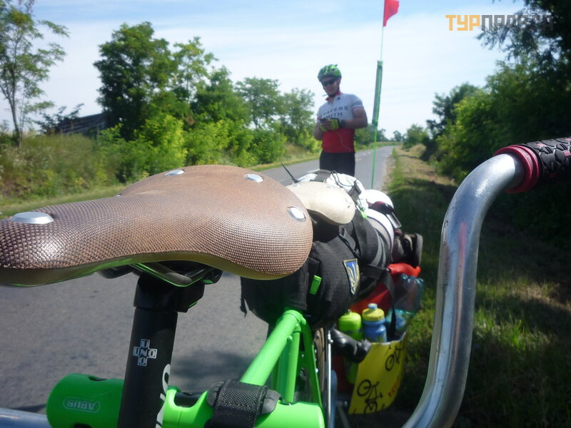 Сегодня смогли проверить работу полиции. В стране по магистралям запрещено ездить на велосипеде. Это хоть и самый удобный и быстрый путь,увы на него запрет. Но "Юкрениен жлобс" никогда не спит. Чтобы не делать круг и с экономить 20км,мы решили ломануть 10км по главной магистрали М3. Вся трасса оснащена видеокамерами, потому уже через 15мин мы услышали звук сирены. Полицейские оказались нормальными ребятами,понимающими английский язык. Они подробно обьяснили,по каким дорогам можно ездить. И в добавок мы получили 5км сопровождения полицейской машины до первого поворота на второстепенную трассу. Выглядело это я думаю эпично.