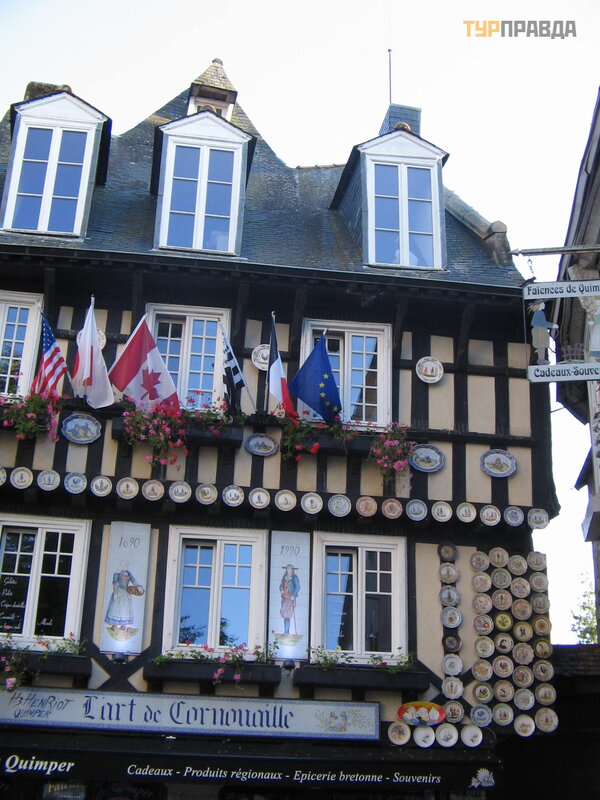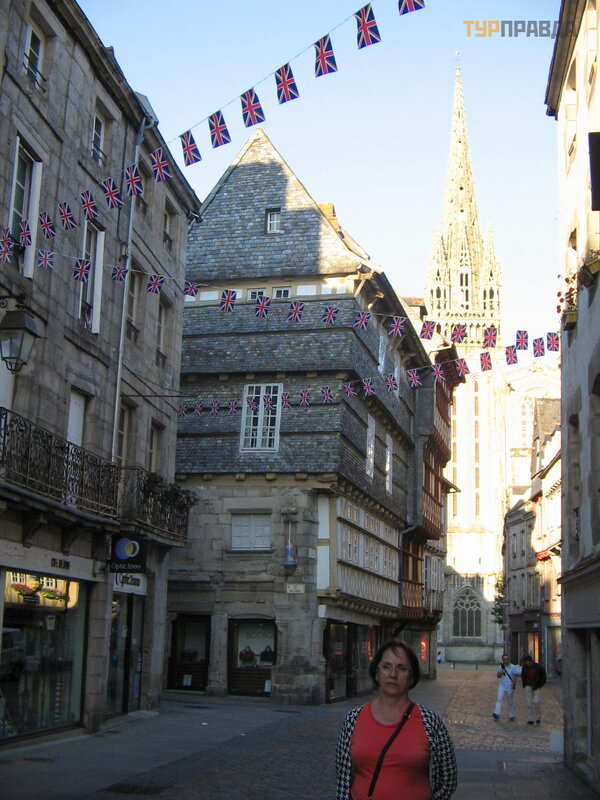 W ję zyku bretoń skim nazwa miasta Quimper oznacza „zbieg rzek”. To tutaj rzeka Steyr wpada do Ody. Ten ostatni przepł ywa przez miasto, jego ujś cie rozszerza się na tzw. aber, a kilka kilometró w od Quimper uchodzi do Zatoki Biskajskiej. Czę ś ć historyczna jest zwarta, dobrze zachowana i ł atwa do zobaczenia. Niestety, nie miał em na to czasu. Dlatego pobiegł em tylko do katedry ś w. Corentin i obszedł go dookoł a.