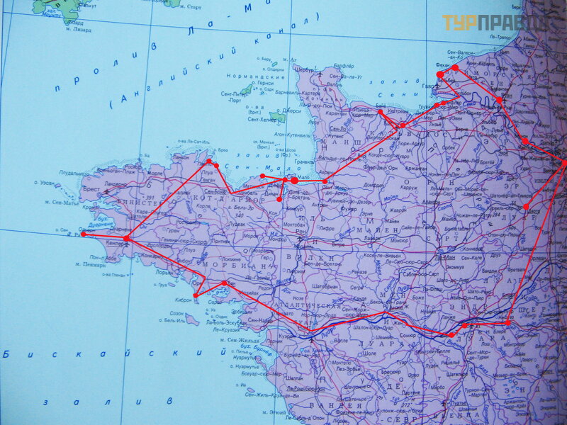 Tak. Trasa był a: Paryż —> Giverny —> Rouen —> Fé camp —> Etretat —> Honfleur —> Deauville —> Caen —> Bayeaux —> Cancale —> Saint-Malo — Dinan — Fort Latte + Przylą dek Frehel —> Ploumanyak —> Paimpol —> Perros-Guirec —> Cape Ra —> Carnac —> Vannes —> Chateau de Usse —> Chateau de Villandry —> Chateau de Chenonceau —> Paryż — Chartres — Paryż