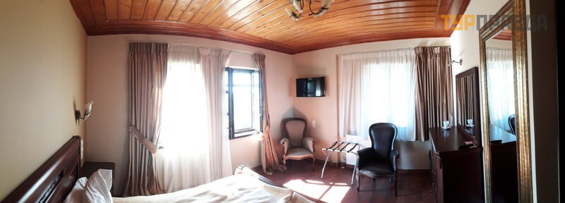 Hotel jest w peł nym tego sł owa znaczeniu „centrum” w mieś cie. Zewnę trznie i wewnę trznie (wedł ug wnę trza pomieszczeń ) przypomina ś redniowieczny zamek, ale z nowoczesnym wyposaż eniem i najwyż szym poziomem komfortu. Pokó j jest przestronny i wygodny. Sufit pię trowy, pię kne lampy i meble. Widok z okna na gó ry jest wspaniał y. Zapał ki ś niadaniowe. Goś cinnoś ć , troska i uprzejmoś ć wł aś ciciela hotelu to przykł ad stosunku do goś ci! Ogó lnie rzecz biorą c, prawdopodobnie najlepszy z 8 hoteli na naszej trasie.