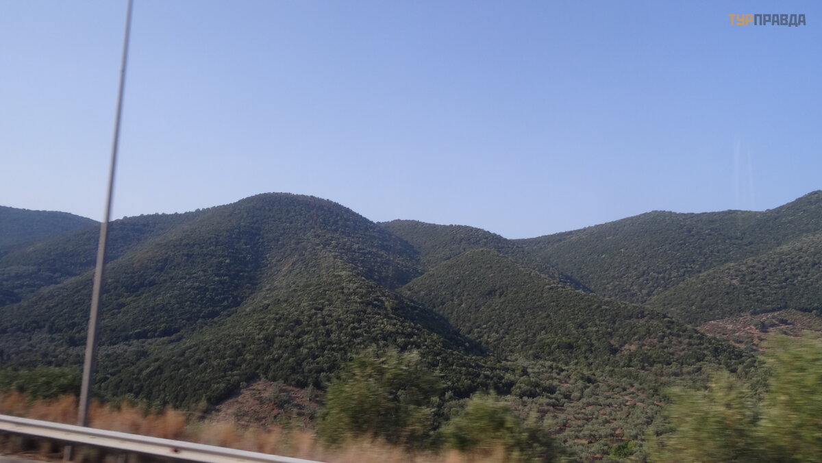 Droga biegł a przez gó rzysty teren, a potem wszyscy zauważ yli, ż e roś linnoś ć jest tu zupeł nie inna niż na Korfu. A steward potwierdził nasze powiedzenie, ż e w Grecji jest wszystko, a nawet ś nieg, wię c futra z Grecji są normalne.