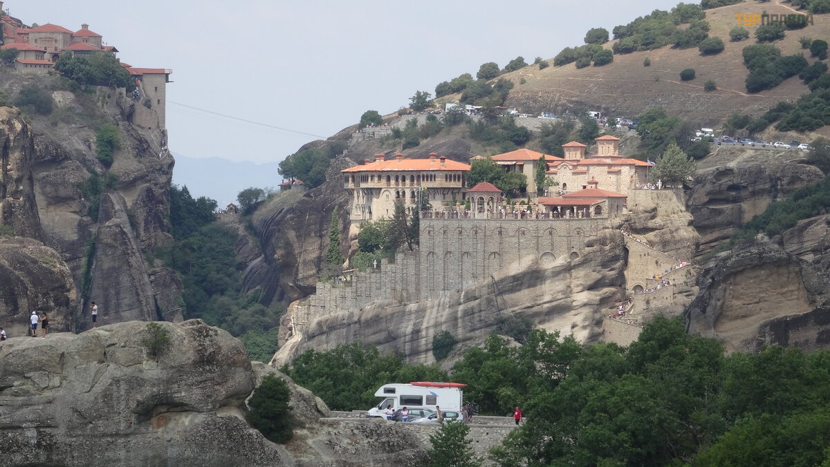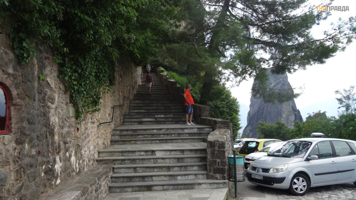Podczas gdy wspinaliś my się , rozglą daliś my po okolicy i sł uchaliś my opowieś ci, nasz wspaniał y kierowca zdoł ał taksować nasz autobus pod samo wejś cie i bez ż adnych opó ź nień pojechaliś my do nastę pnego klasztoru.