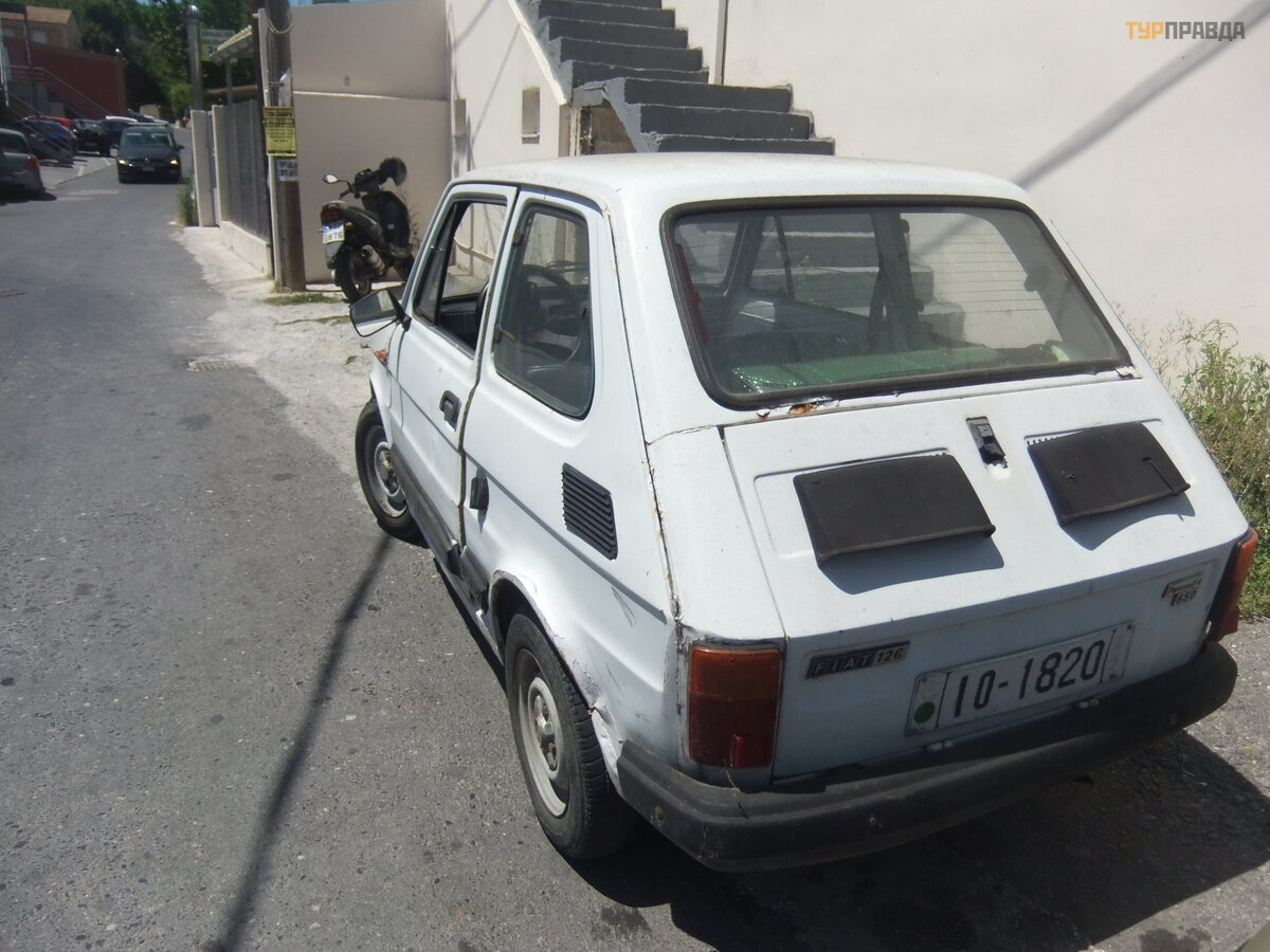 Egzemplarz na zdję ciu pochodzi z lat osiemdziesią tych, ale w stanie uż ytkowym. Na nim do supermarketu przyjechał a mł oda para. Malutki salonik jest doś ć przytulny i stosunkowo wygodny. Polski ż art tamtych lat. Do Malucha przyjeż dż a dwó ch Polakó w. (polski pseudonim Fiat 126 R). Dialog – Kazimir, jedziemy od dawna, ale to betonowe ogrodzenie w ż aden sposó b się nie koń czy. - Bzdyszek, to nie jest ogrodzenie. To jest granica.