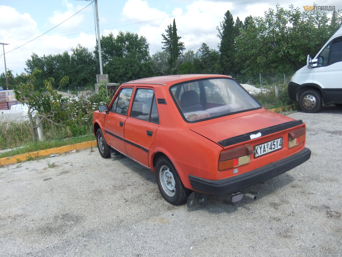Skoda 120. Ostatnia tylnonapę dowa Skoda z tylnym silnikiem. I na dobre w ogó le ostatnia prawdziwa Skoda. Po niej do produkcji wszedł stworzony już wspó lnie z Wł ochami Favorit, nastę pnie Fabia i mał ż eń stwo z koncernem Volkswagen. Ale trafił a do Skody raczej na korzyś ć . Lata produkcji 1976 - 1990. Należ y do wł aś ciciela mał ej stacji benzynowej w gó rach.