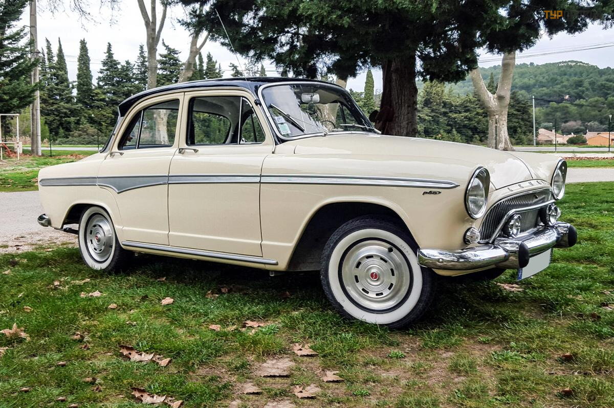 SIMCA - Aronde (Typ 90 A) Lata produkcji 1955 - 1958. Pierwszy samochó d marki Simca, produkowany wedł ug najnowocześ niejszych w tamtym czasie (amerykań skich) technologii. Tyle, ż e wł aś ciciel firmy odwiedził Stany Zjednoczone i był trochę uraż ony tym, jak rzemieś lnicza produkcja samochodó w w Europie był a w tym czasie w poró wnaniu z amerykań skimi fabrykami. A od Ameró w kupił em obrabiarki i technologie. Okazał o się , ż e najbardziej elegancki samochó d. Ale kopia na zdję ciu najprawdopodobniej nie jest w ruchu.