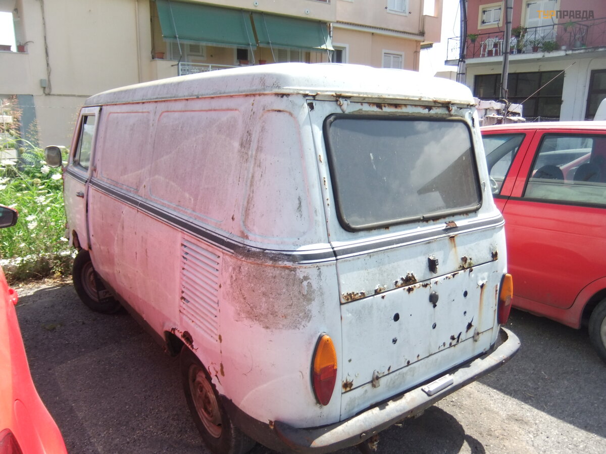 Fiat 600 T. Poł owa lat siedemdziesią tych. Historia tego samochodu jest nastę pują ca. W 1955 roku najmą drzejszy Dante Giacosa stworzył Fiata 600. (Nasz garbaty Zaporoż ec wyglą da jak on). Samochó d stał się tak popularny, ż e jest uważ any za jeden z symboli Wł och. Ale był mał y, a wł oskie rodziny są duż e i czę sto nie są bogate. Z tego powodu, na bazie Fiata 600, w 1956 roku powstał Fiat 600 Multipla. Był to bardzo mikrobus z tylnym silnikiem. Jest uważ any za prekursora obecnej klasy MPV. Có ż , trochę pó ź niej na bazie Fiata 600 Multipla powstał Fiat 600 T. Lekki dostawczy van z tym samym silnikiem o pojemnoś ci 600 kostek.