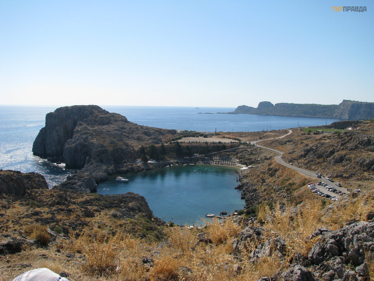 Po zdobyciu szczytu postanowiliś my przecież nie jechać na Akropol, ale wspią ć się na zbocze. Po przeciwnej stronie gó ry znajdują się bardzo udane widoki na Zatokę ś w. Pawł a w formie serca.