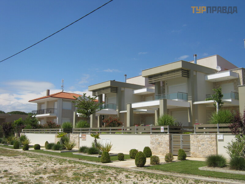 Zbudowali cał ą wioskę , któ ra znajduje się w odległ oś ci spaceru od morza. Apartamenty na każ dy gust i budż et, zbudowane w ró ż nych stylach: od klasycznego macedoń skiego