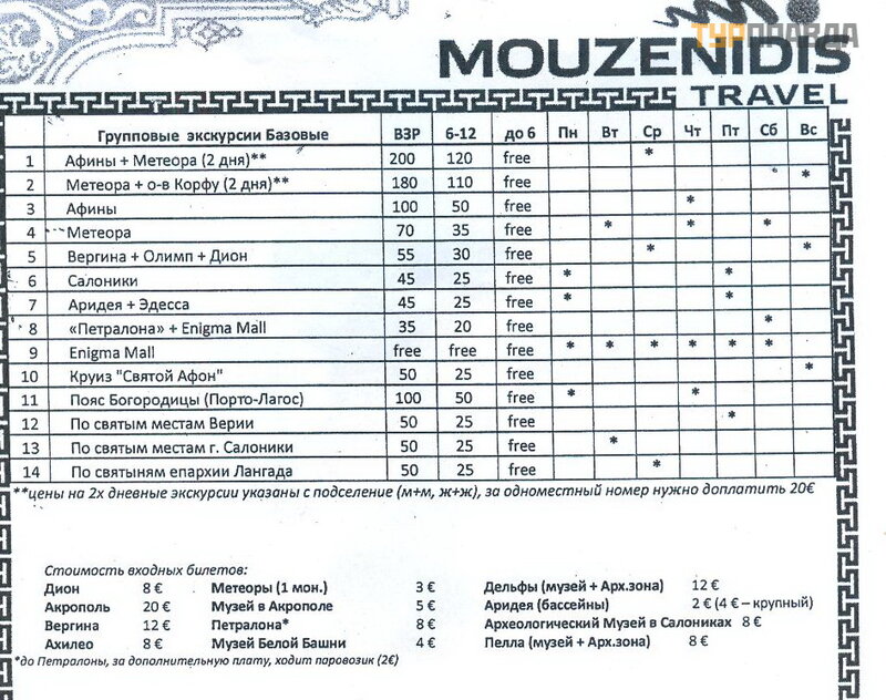 Przy okazji, oto metka z ceną wycieczki z Mouzenidis w 2017 roku.