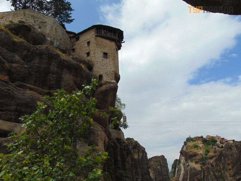 mnisi i goś cie mogli dostać się do klasztoró w tylko po drewnianych schodach na zawiasach lub przy pomocy mnichó w, któ rzy podnosili je w specjalnych sieciach. W ten sam sposó b do klasztoró w podnoszono ż ywnoś ć , wodę , materiał y budowlane. Podczas naszej wizyty wł aś nie podnoszono materiał y budowlane i na wł asne oczy widzieliś my wycią garkę w akcji.
