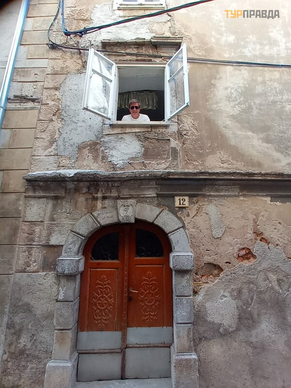 W tej chwili. Jeszcze jedna minuta. W Senyi są.2-3 fontanny. A do tych fontann przychodzą kobiety z wiadrami po wodę . Có ż , tak jak ten. W czapce i fartuchu. Oczywiś cie dzisiejsze kobiety uż ywają tej wody tylko do mycia podł ó g w kawiarniach i sklepach, ale jeś li zmruż ysz oczy, czas szybko cofnie się .