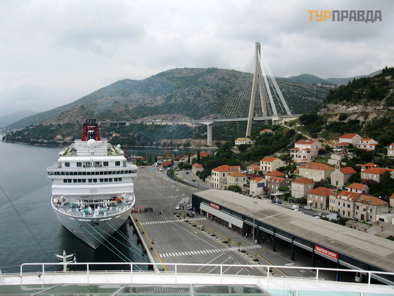 Вода немного прохладная, поэтому решили вернуться на корабль, где поплавать в бассейнах корабля, понежится в джакузи и вскоре мы отплываем из Дубровника. Прекрасный мост Дубровника провожает нас ,