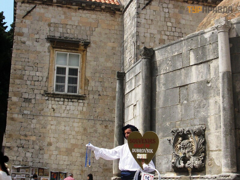 Лайнер причалил в порту города Дубровник, в порту ларьки с сувенирами, другими вещами и местными сладостями.