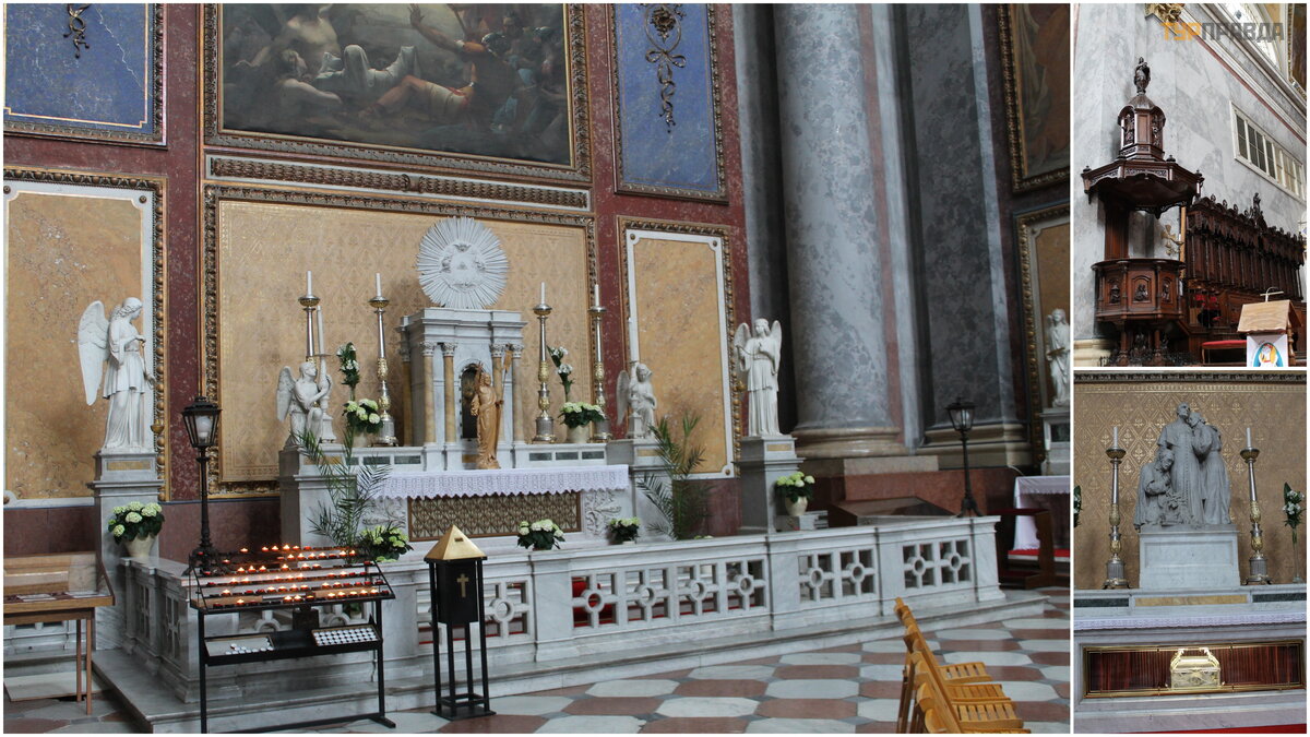 А что внутри? И тут Собору есть чем прихвастнуть – купол высотой более 70 м и самая большая в мире (!!!) картина главного алтаря, написанная на одном холсте по мотивам алтарного образа, созданного Тицианом для главного алтаря Венеции.