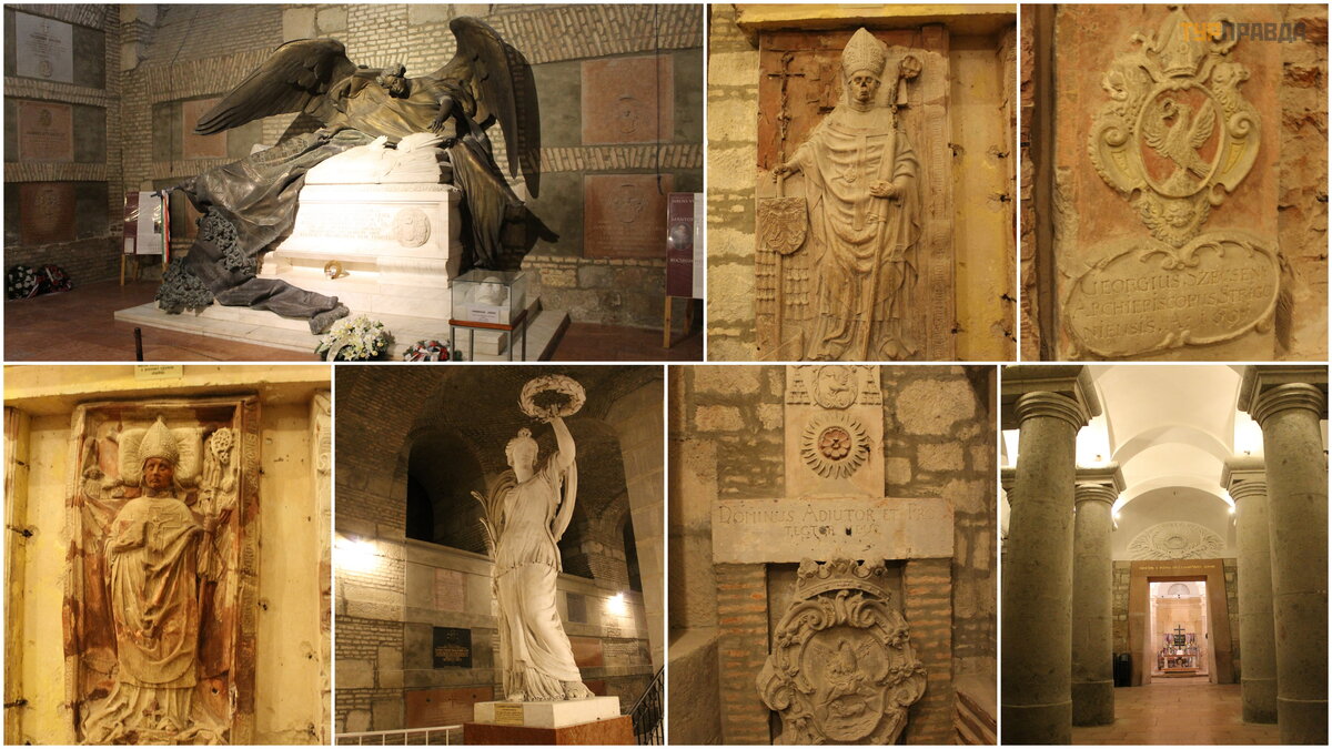 Но перед этим мы спустились в соборную Крипту (раз уж билеты куплены), служащую местом захоронения эстергомских архиепископов, а также перезахоронения отдельных исторических личностей, среди которых три венгерских короля.