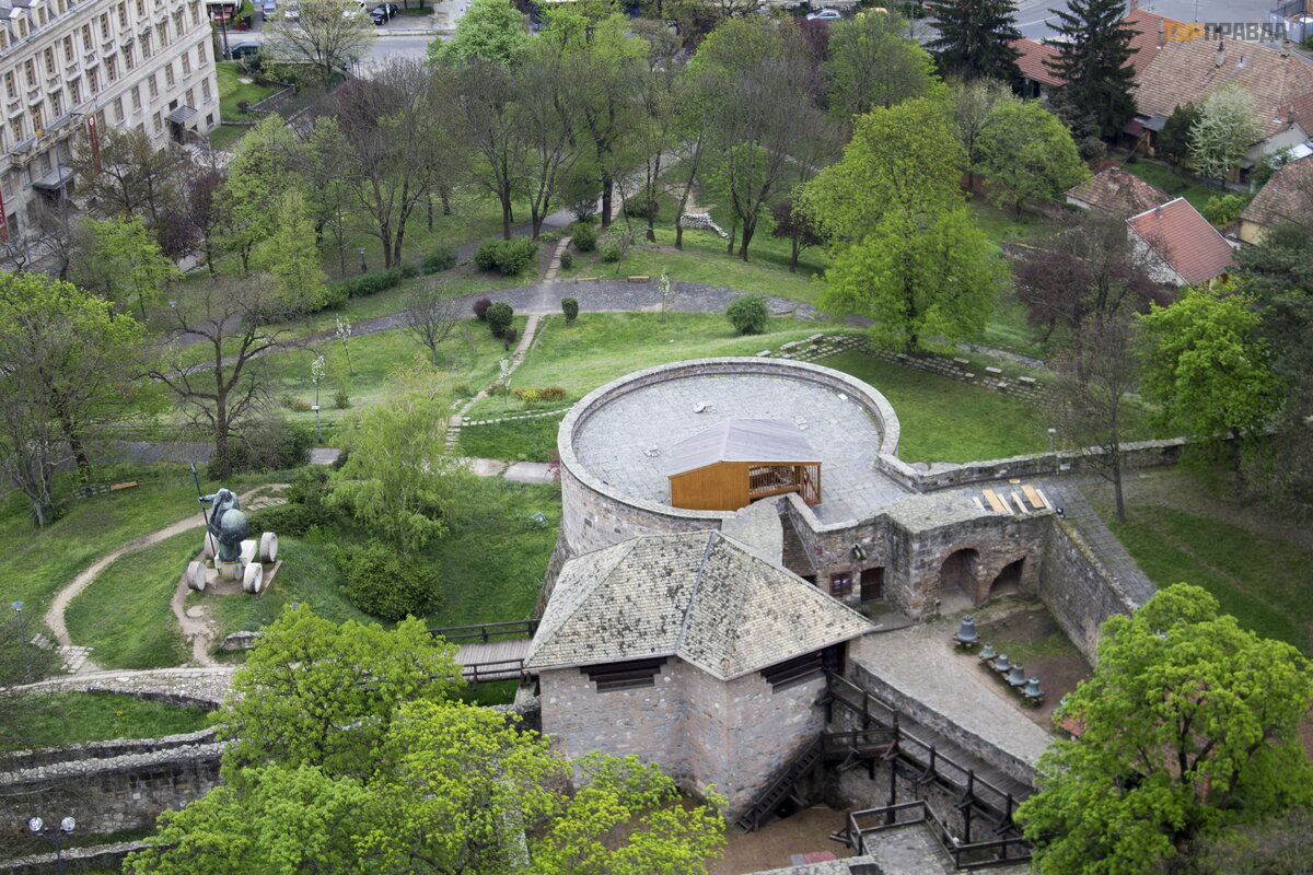 Отсюда, кстати, открывается еще и замечательный вид на королевский дворец Арпадов, построенный в Х в., разрушенный во время турецкого нашествия и восстановленный в начале ХХ в. Здесь сейчас расположился Музей истории города с богатой коллекцией оружия.
