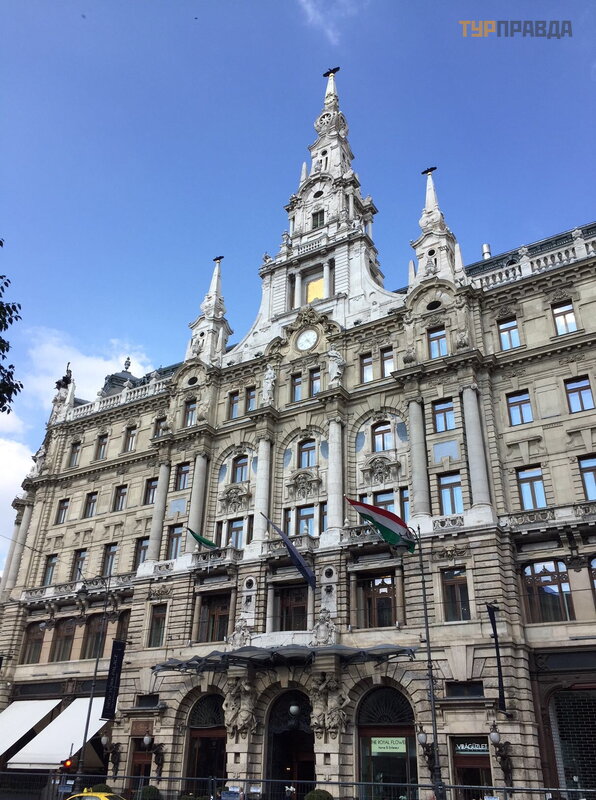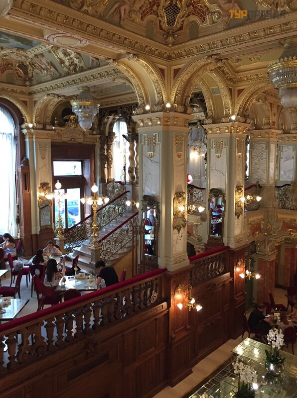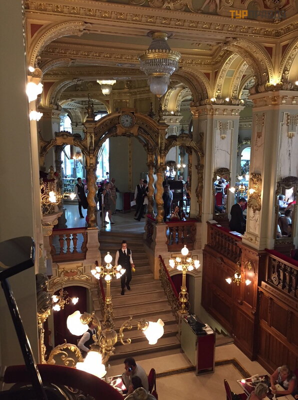 Nastę pną lokalizacją wartą odwiedzenia jest New-York Palace Hotel (1895, Alaios Heismann). Zbudowany w stylu secesyjnym z elementami neorenesansowymi. Przez cał y czas budynek ten sł yną ł przede wszystkim z kawiarni o wspaniał ych wnę trzach. Od momentu otwarcia stał się najpopularniejszym miejscem spotkań bogatych i sł awnych. Legenda gł osi, ż e w dniu otwarcia ktoś z miejscowej bohemy wrzucił klucz do lokalu do Dunaju, aby był on otwarty zaró wno w dzień , jak iw nocy. Przyjeż dż ał o tu wielu znanych pisarzy, poetó w i dziennikarzy, dlatego z czasem powstał o stowarzyszenie literackie. Jej czł onkowie przy stoł ach prowadzili dyskusje, któ re nastę pnie znalazł y odzwierciedlenie na ł amach gazet i ksią ż ek.
