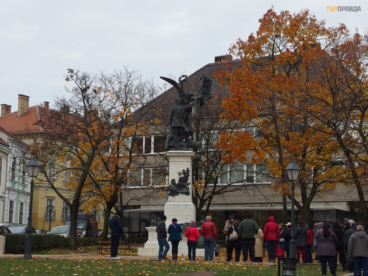 Wychodzą c na Placu ś w. Marii Teresy. Autorem pomnika jest rzeź biarz Zsigmond Kisfaludi Strobl (Zsigmond Kisfaludi Stró bl) (1932). Zsigmond Strobl (1884-1975) jest takż e autorem postaci Lajosa Kossutha w kompozycji pamią tkowej w wę gierskim parlamencie.
