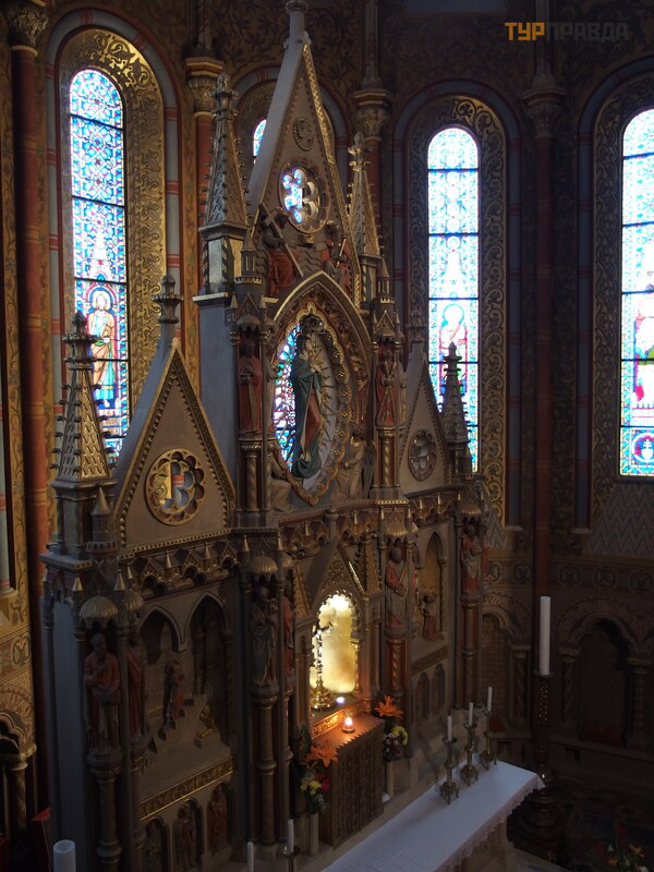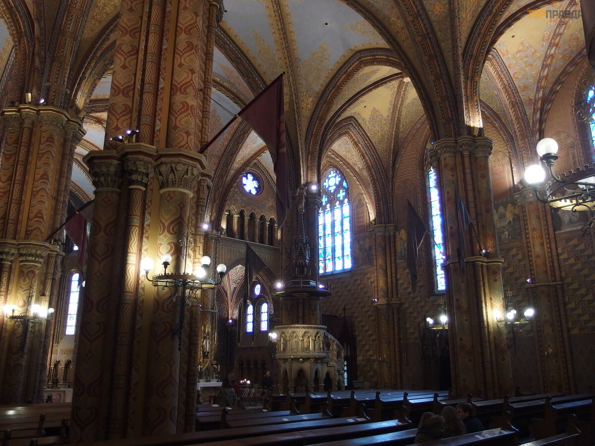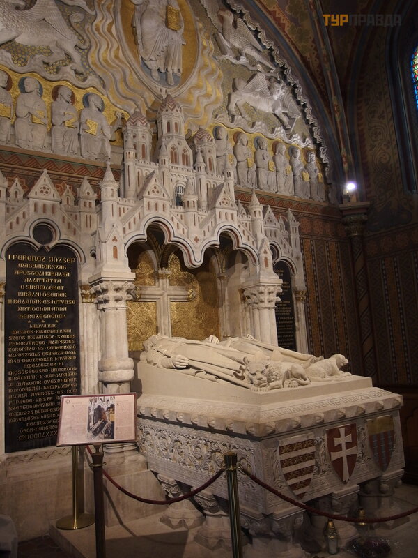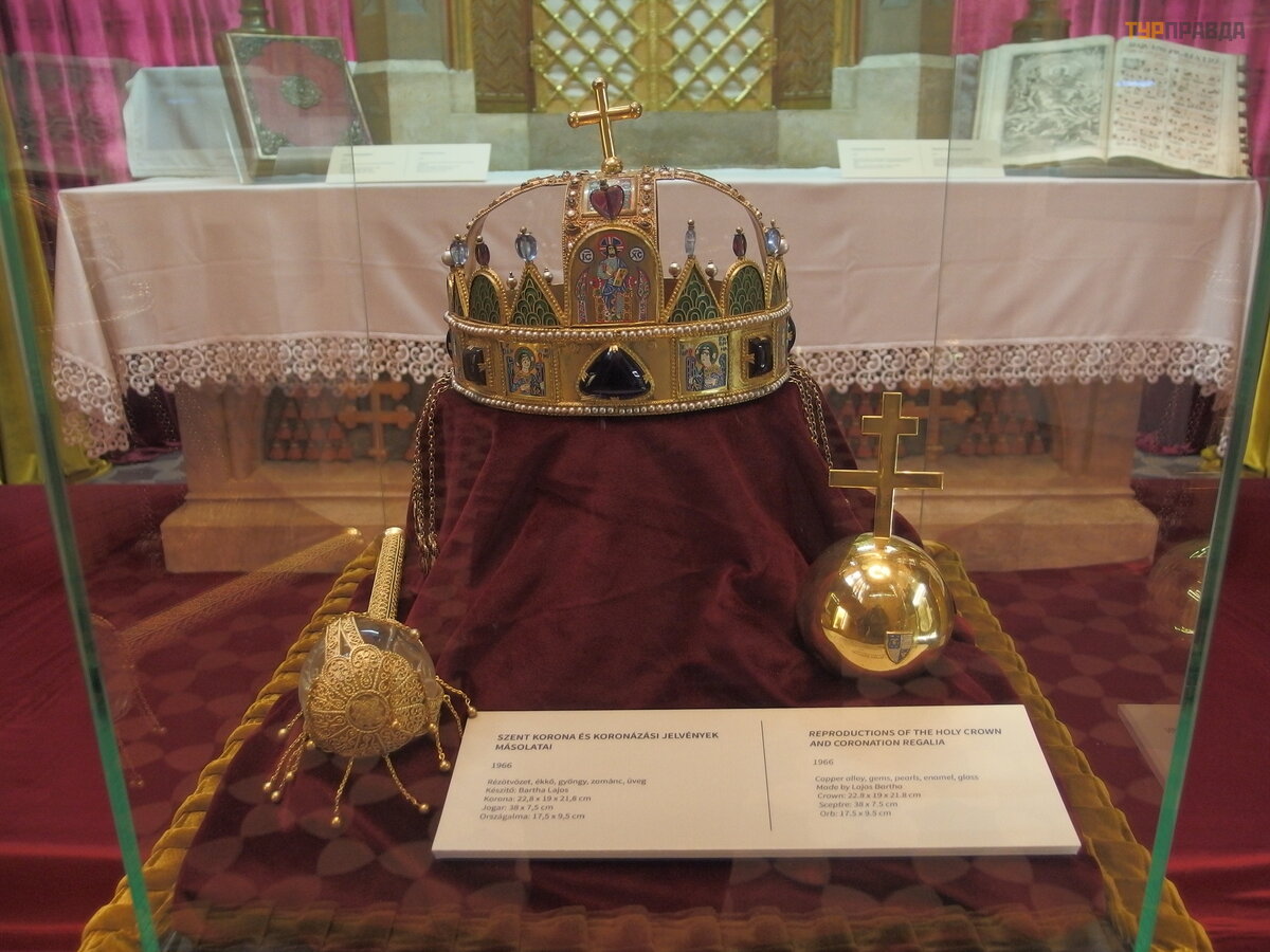 Koś ció ł zachował symbol monarchii wę gierskiej – kopię korony uż ywanej do koronacji kró ló w. Odprawiano w nim msze na cześ ć koronacji nowych wł adcó w (same koronacje odbywał y się w Szekesfehervar), w 1867 r. koronowano tu Franciszka Jó zefa i jego ż onę Elż bietę (Sissi), a w 1916 r. Karola IV i Zitę z Parmy, ostatnią z dynastii Habsburgó w.