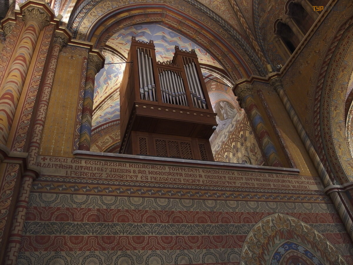 Na szczegó lną uwagę zasł ugują zainstalowane w koś ciele organy. Instrument uważ any jest za najwię kszy w Budapeszcie. Na począ tku XX wieku pienią dze na organy przeznaczył cesarz Austro-Wę gier Franciszek Jó zef I, któ ry postanowił uczcić.40. rocznicę swego panowania na czele podwó jnego pań stwa. Produkcję instrumentu muzycznego zakoń czono dwa lata pó ź niej - w 1909 roku.