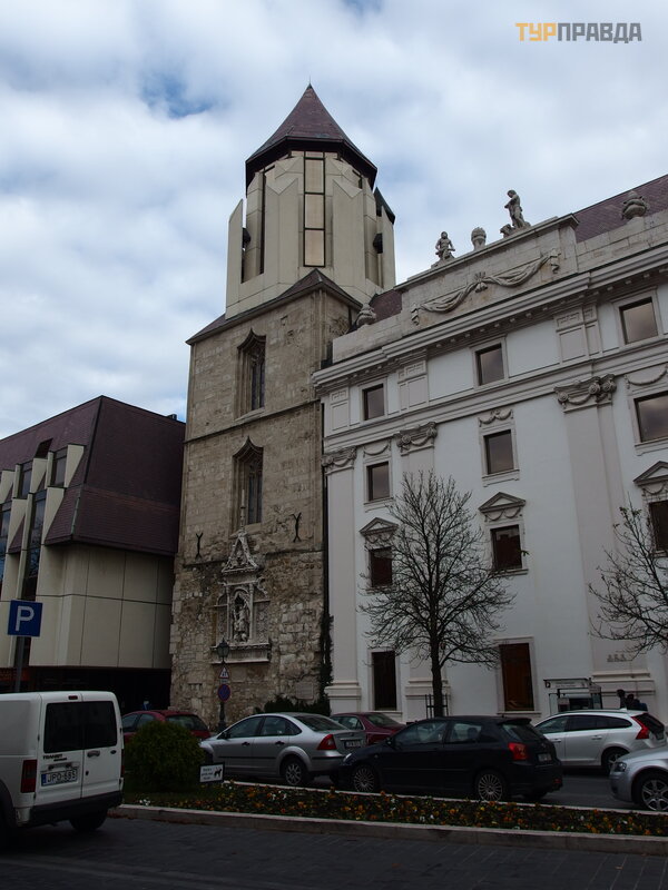 Matias Hunyadi, wielki reformator, mecenas sztuki i architektury, wznió sł dzwonnicę , któ ra do dziś zachował a swą okazał oś ć (od oryginalnego obrazu odró ż nia ją tylko kopuł a). Pię kno ś wią tyni, kolorowe witraż e i architektura uchronił y ją przed zniszczeniem przez tureckich najeź dź có w.