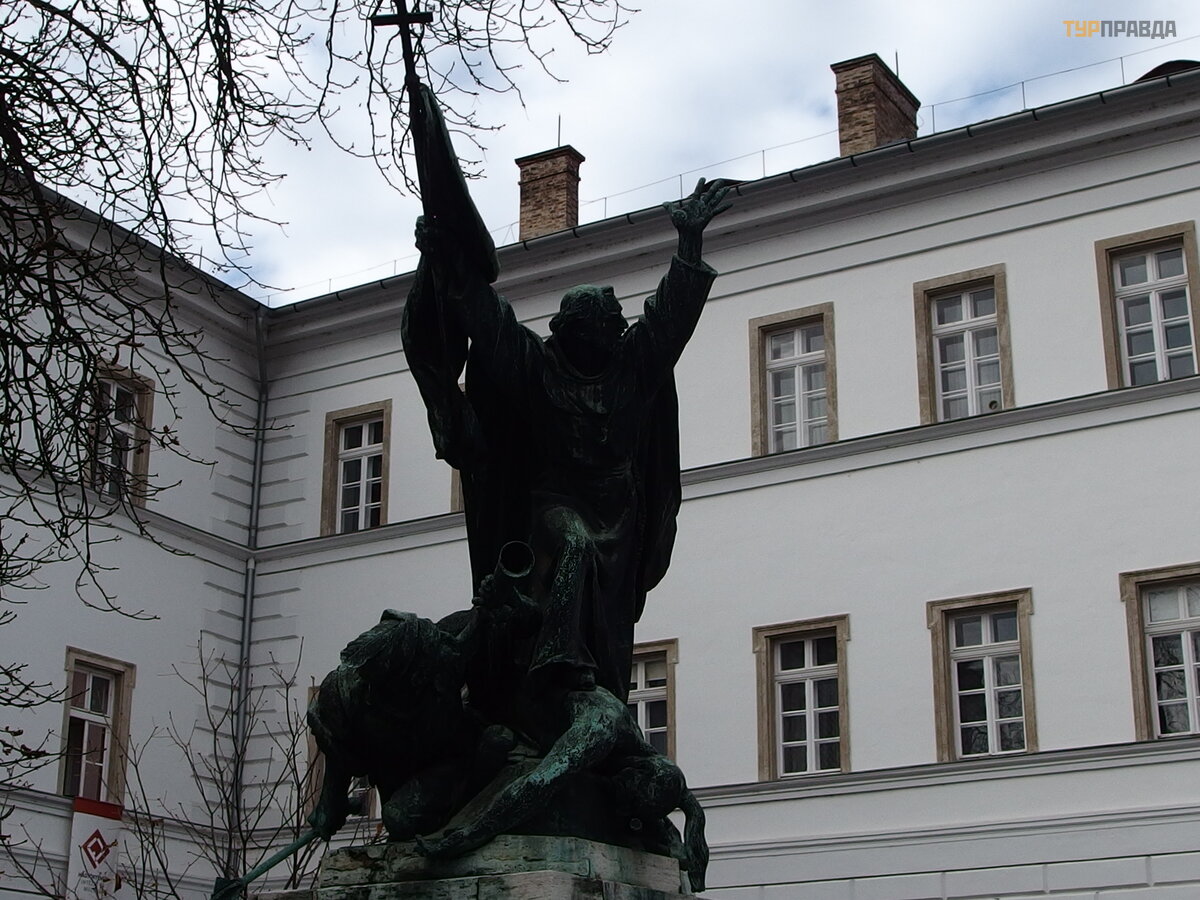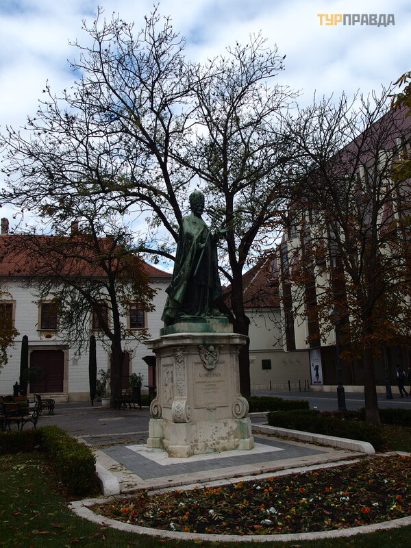 Idą c wzdł uż budynku archiwum po lewej stronie, moż esz udać się na plac Capistrano (Kapisztrá n té r)nazwany na cześ ć wł oskiego franciszkanina Giovanniego (Janos) Capistrano (1386-1456), mnich-kaznodzieja, któ remu udał o się zebrać armię przeciwko Turkom. Jest też bardzo ciekawy pomnik tego mnicha, stoją cego jedną nogą na ciele zamordowanego Turka.