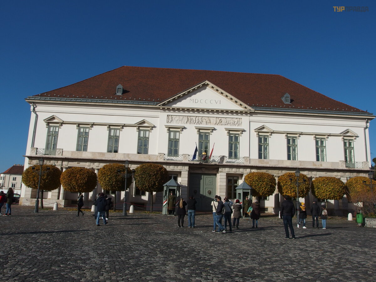 Dwa kolejne budynki na tym placu zasł ugują na osobną historię . To Pał ac Sandoró w (dom nr 1) wybudowany dla hrabiego Wincentego Sandora, któ rego ż ona hrabina Anna Sapori marzył a o takim miejscu zamieszkania, ską d otwierał aby się pię kna panorama miasta. Ten elegancki neoklasycystyczny pał ac został zbudowany przez Mihaly Pollacka i wiedeń skiego architekta Johanna Amana w latach 1805-1821. Fasadę pał acu zdobią pł askorzeź by przedstawiają ce greckich bogó w Olimpu, a takż e pasowanie na rycerza hrabiego Shandora. W czasie II wojny ś wiatowej pał ac został zniszczony, odbudowę zakoń czono dopiero w 2002 roku. Teraz jest tutaj rezydencja prezydenta Wę gier. Pał ac posiada pię kne wnę trza: gobeliny, kryształ owe ż yrandole, obrazy Karoly Lotza. Ale zwiedzają cy są tu wpuszczani tylko raz w roku, zwykle we wrześ niu, w ramach Wę gierskich Dni Dziedzictwa Kulturowego.