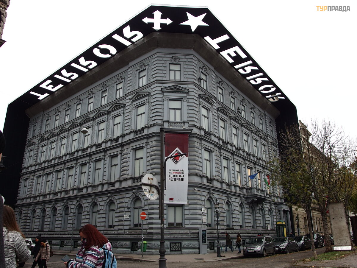 W budynku z ogromnym baldachimem wyrzeź bionym ze sł owem TERROR mieś ci się Muzeum Ofiar Dyktatury Komunistycznej i Faszystowskiej. Miejsce nie został o wybrane przypadkowo. W latach wojny mieś cił a się tu siedziba miejscowych faszystó w, a w latach 50. XX w. mieś cił a się tu Sł uż ba Bezpieczeń stwa Narodowego (odpowiednik sowieckiego NKWD). W piwnicach budynku urzą dzono wię zienie, w któ rym przetrzymywano wię ź nió w politycznych. Muzeum został o otwarte w 2002 roku. Jego ekspozycja natychmiast wzbudził a gorą ce kontrowersje. Zdaniem krytykó w przedstawia Wę gry jako ofiarę zagranicznych okupantó w i nie obejmuje w peł ni udział u samych Wę gró w w okrucień stwach totalitarnych reż imó w. Jednocześ nie znacznie wię cej uwagi poś wię ca się okresowi komunistycznemu niż faszystowskiemu.
